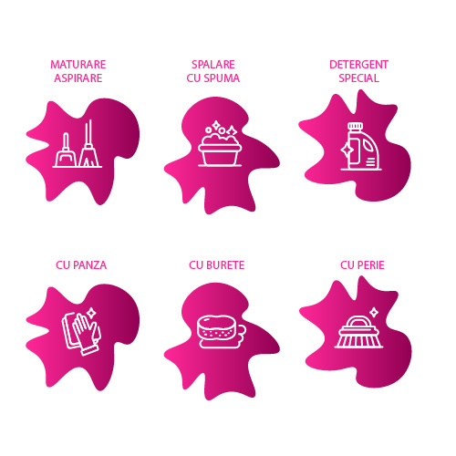 - se absoarbe pata cu un servetel, apoi se foloseste spuma de la detergentul special , se lasa sa actioneze si se indeparteaza / clateste cu o carpa moale