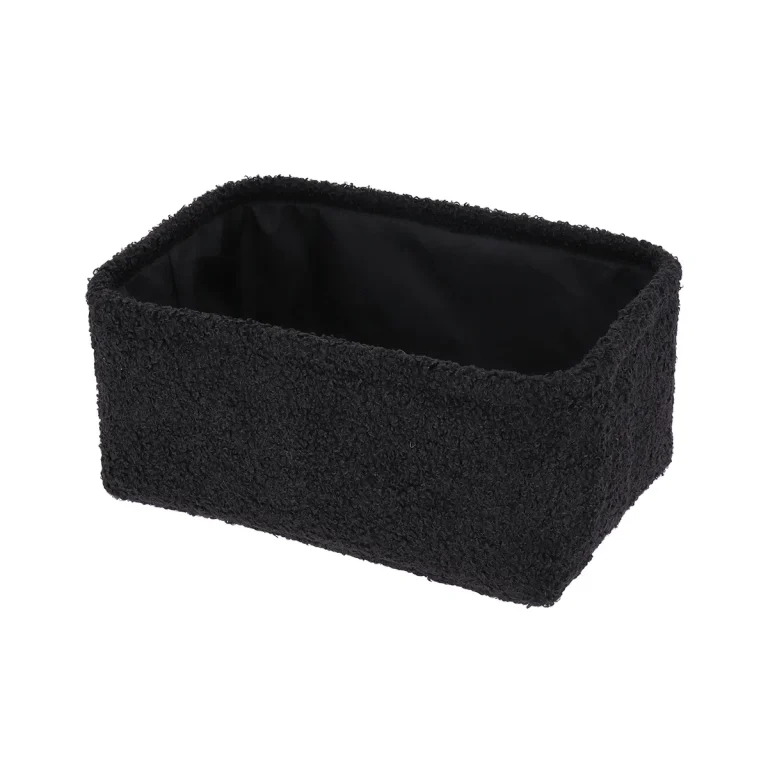 Coș depozitare rectangular POLIESTER finisaj pufos 22X14X10,5 CM – Negru | Organizatoare baie