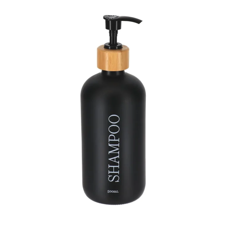 DISPENSER SAMPON 500ML STICLĂ/ BAMBUS – NEGRU MAT