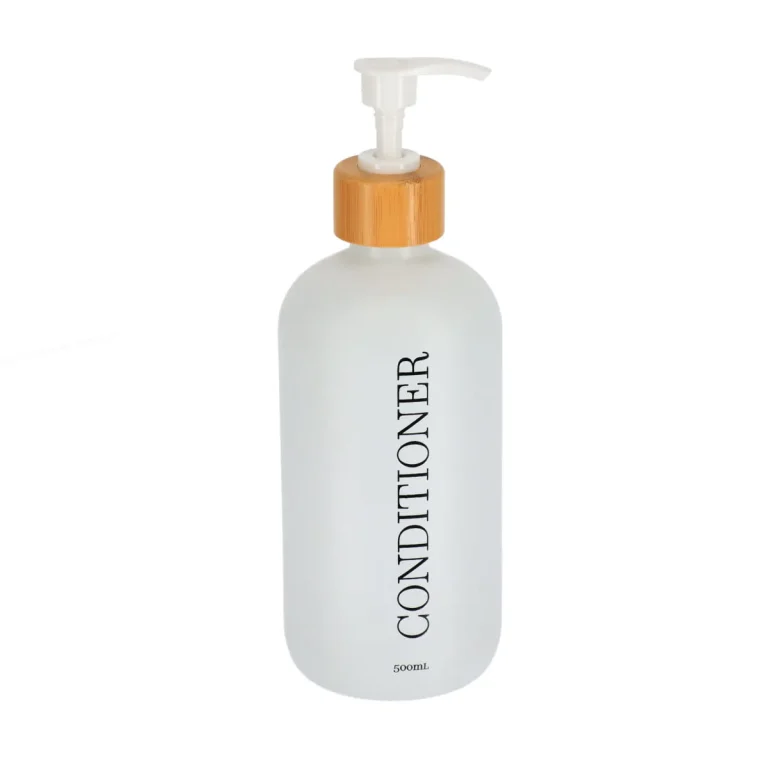 DISPENSER BALSAM 500ML STICLĂ/ BAMBUS – ALB MAT