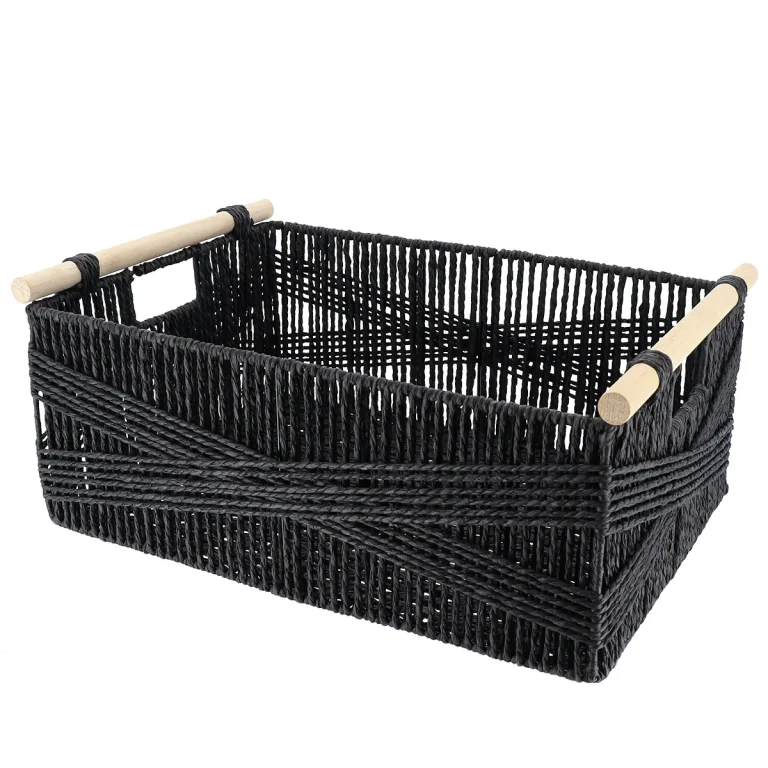 Coș depozitare HÂRTIE / METAL / LEMN 44X31X17 cm Negru | Organizatoare baie