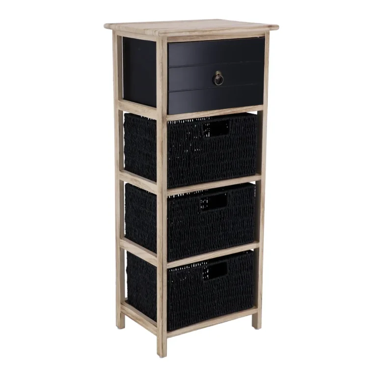 Corp mobilier MDF cu 4 sertare 86×27,5×37,5 cm – Natural/Negru imprimat | Mobilier depozitare baie