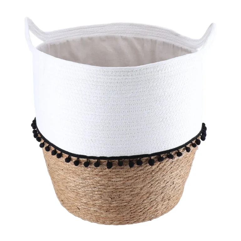 Coș rufe BUMBAC / IARBA DE MARE 32X25X20 cm – Alb / Natural | Organizatoare baie
