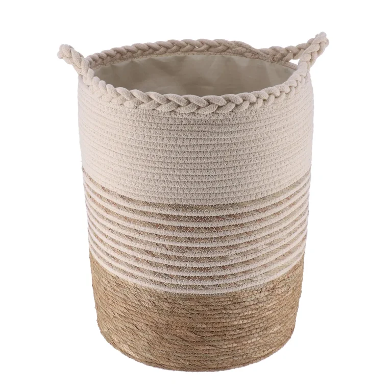 Coș rufe rustic mediu 37X43 cm – Alb / Natural | Organizatoare baie