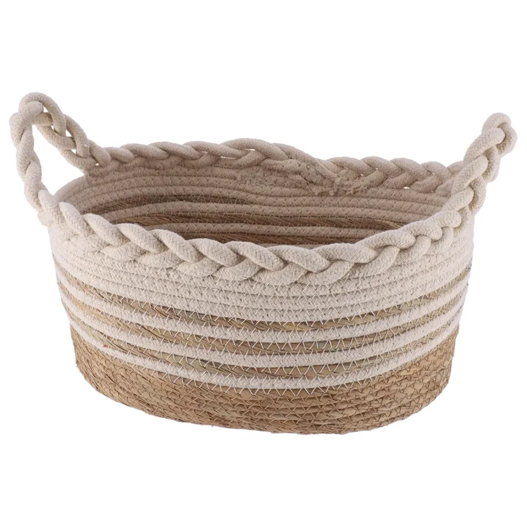Coș rufe BUMBAC / IARBA DE MARE 30X22X17 cm – Alb / Natural | Organizatoare baie