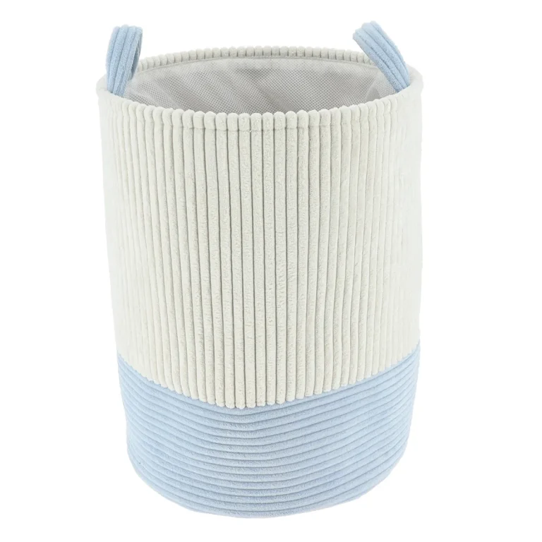 Coș rufe bicolor catifelat 35X46 cm mediu – Alb / Azur | Organizatoare baie