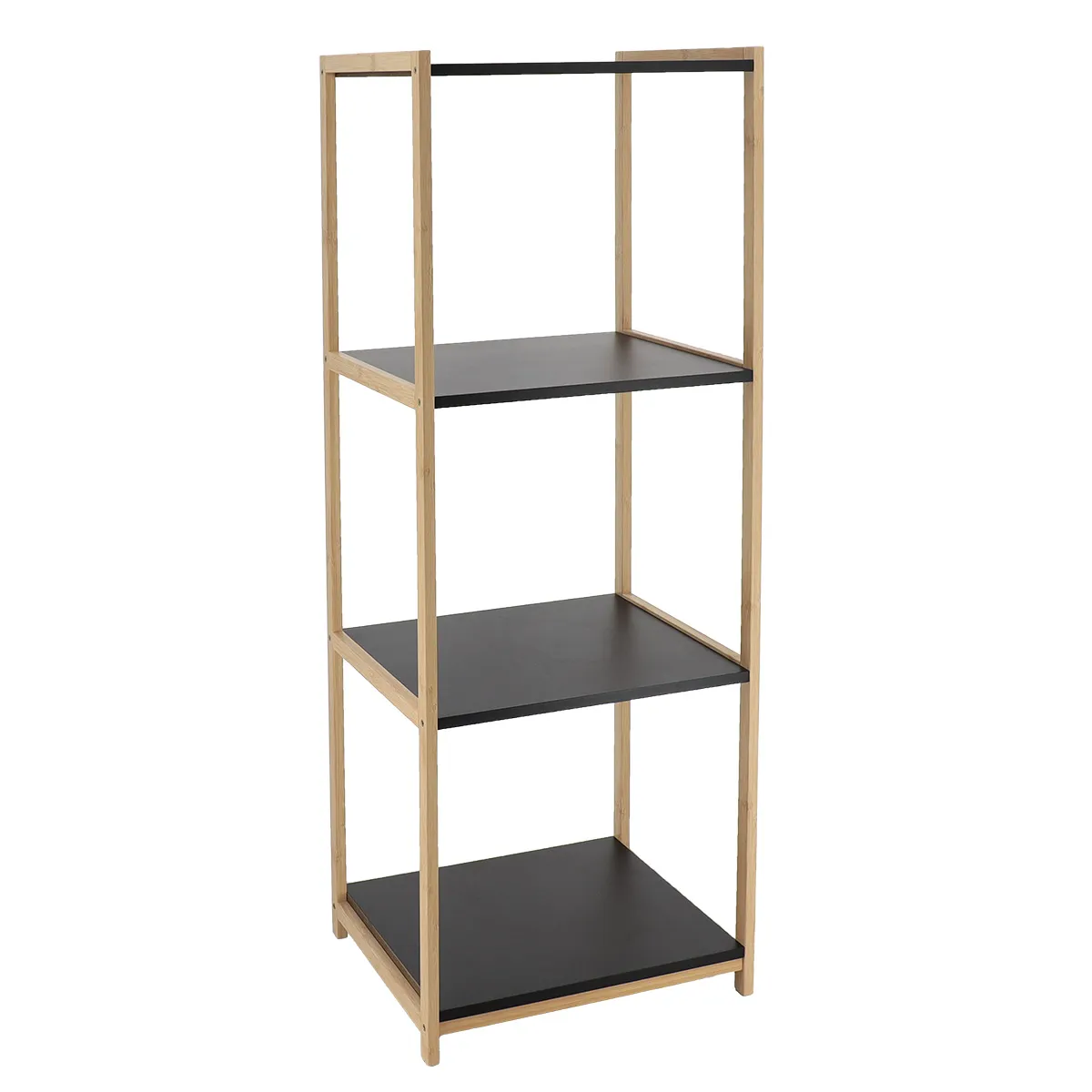 Corp mobilier BAMBUS/MDF 4 rafturi 70x33x43 cm – Bamboo / Negru | Mobilier depozitare baie