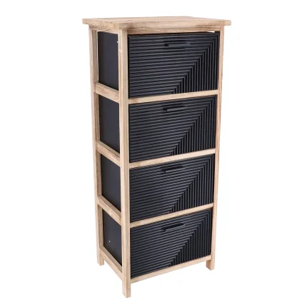 Corp mobilier MDF cu 4 sertare 86×27,5×37,5 cm – Natural/Negru imprimat | Mobilier depozitare baie