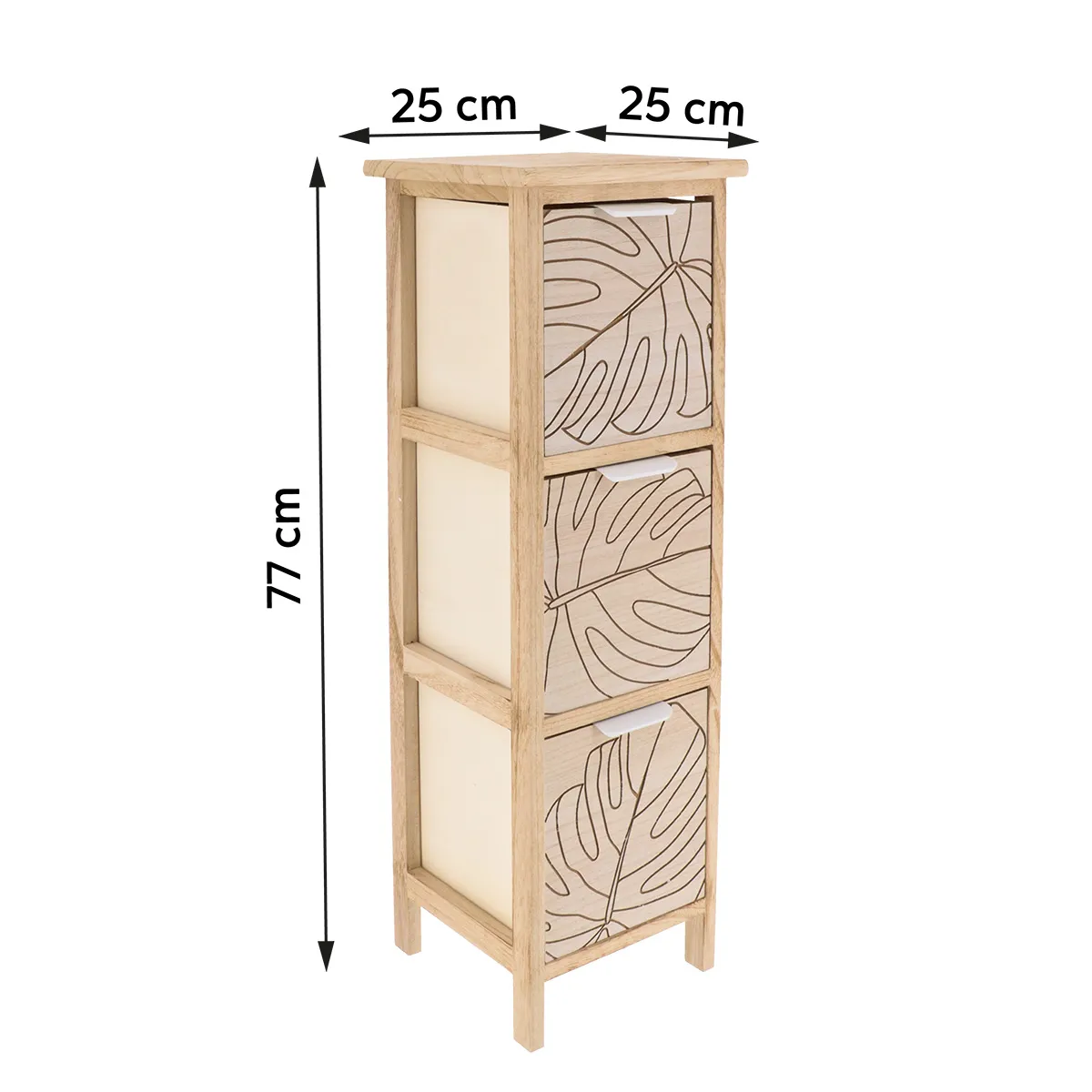 Corp mobilier MDF cu 3 coșuri gravate 77x25x25 cm – Alb/Natural | Mobilier depozitare baie. Corpul de mobilier pentru baie din MDF, cu 3 coșuri gravate, este o soluție elegantă și practică pentru organizarea spațiului sanitar. Combinația de finisaj alb și natural, completată de modele gravate cu motive vegetale, oferă un design rafinat și relaxant, ideal pentru băi moderne, scandinave sau cu influențe naturale. Cele 3 coșuri încăpătoare permit depozitarea organizată a produselor de igienă, cosmeticelor sau accesoriilor de baie, iar structura verticală economisește spațiu, fiind potrivită pentru băi mici sau medii. Aspectul decorativ transformă acest corp de mobilier într-un element funcțional și estetic. Țara de origine : CN.