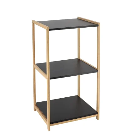 Corp mobilier 3 rafturi MDF 68,5x30x35,5 cm – Bamboo / Negru | Mobilier depozitare baie
