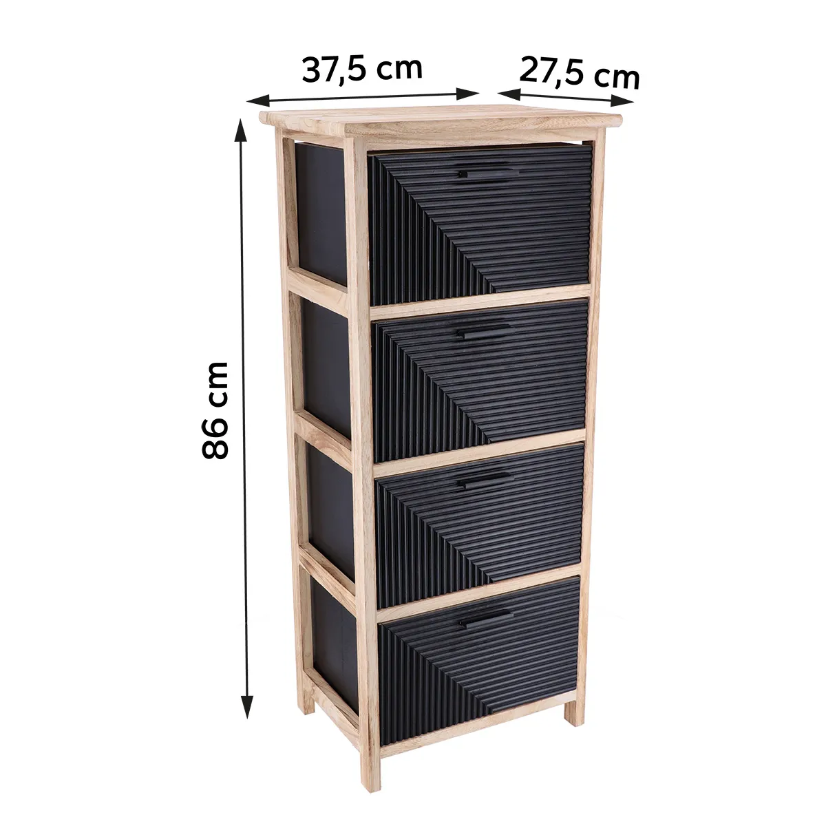 Corp mobilier MDF cu 4 sertare 86×27,5×37,5 cm – Natural/Negru imprimat | Mobilier depozitare baie