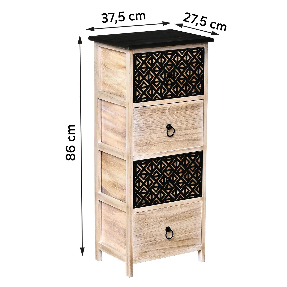 Corp mobilier MDF cu 4 sertare 86×27,5×37,5 cm – Natural/Negru imprimat | Mobilier depozitare baie