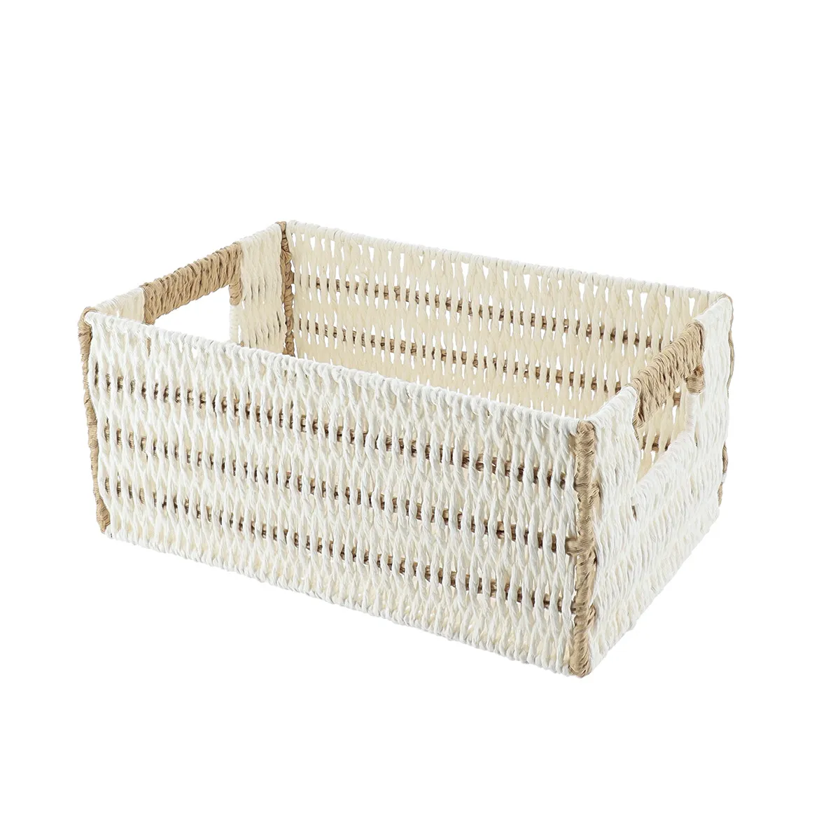 Coș bicolor depozitare METAL / HÂRTIE 30X20,5X13,5 cm – Alb / Natural | Organizatoare baie
