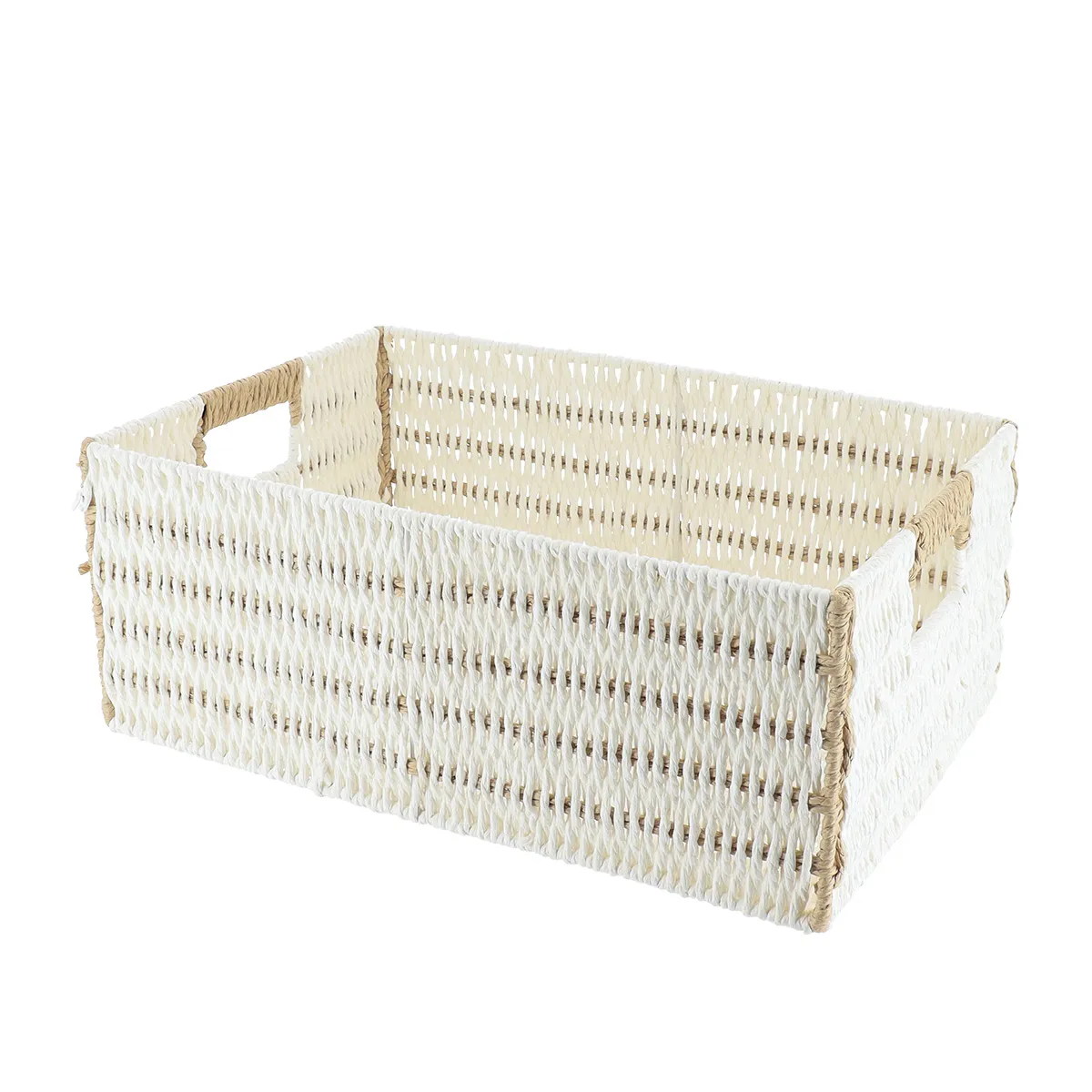 Coș bicolor depozitare METAL / HÂRTIE 39X27X15,5 cm – Alb / Natural | Organizatoare baie