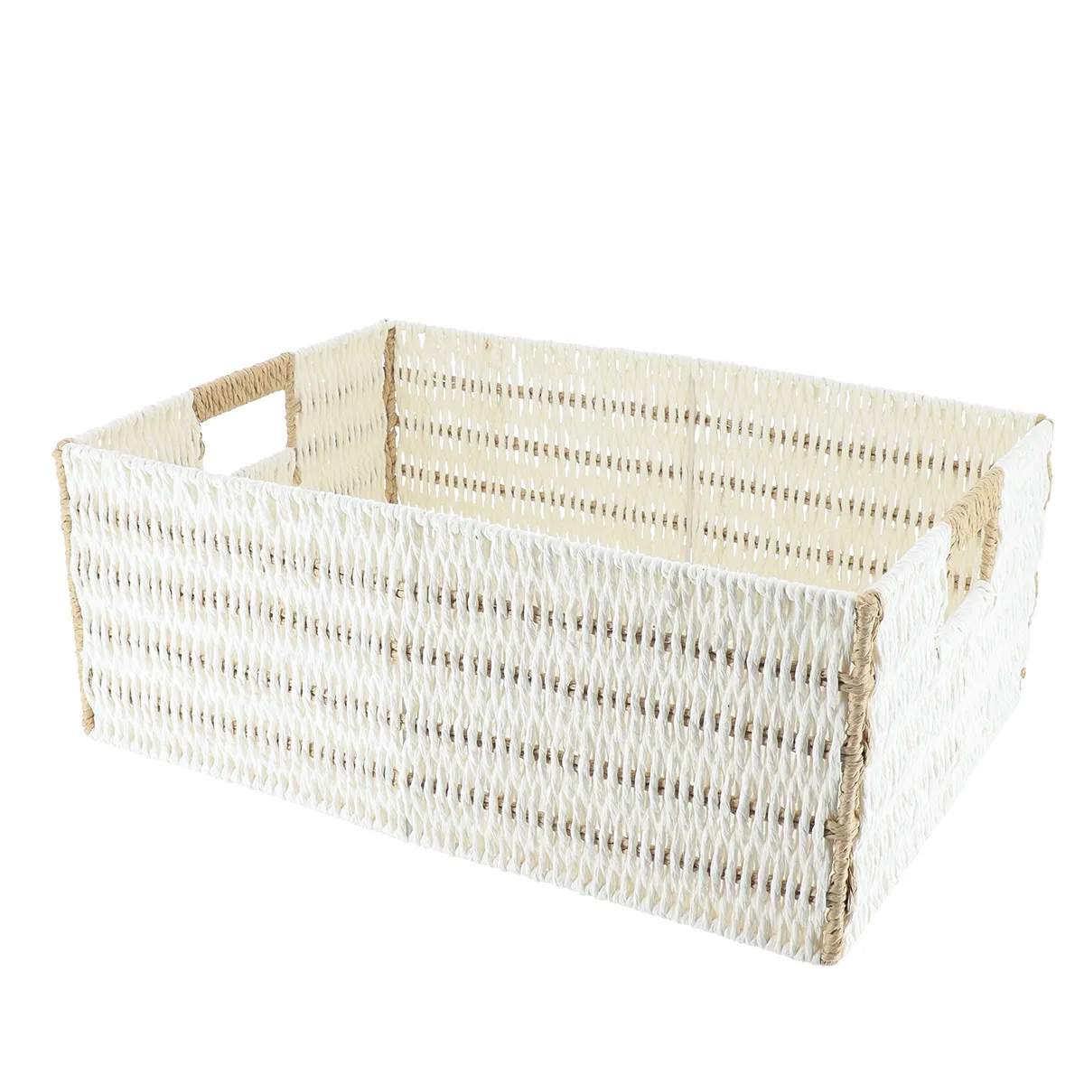 Coș bicolor depozitare METAL / HÂRTIE 44X31X17 cm – Alb / Natural | Organizatoare baie