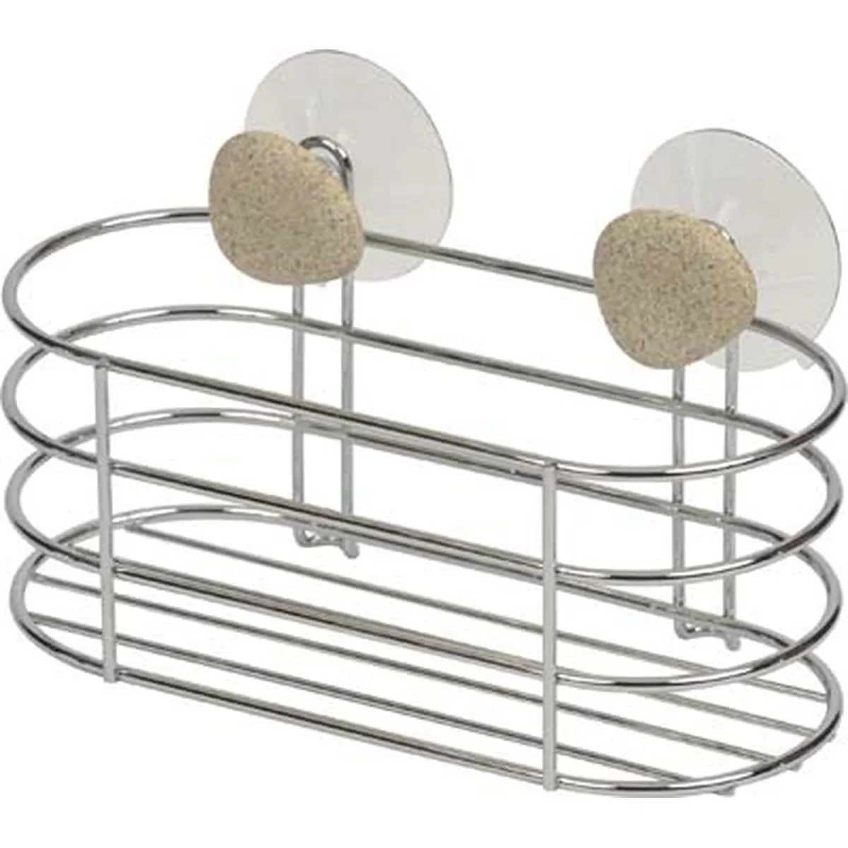 COȘ COSMETICE CU VENTUZE PEBBLE – CROM | ETAJERE BAIE
