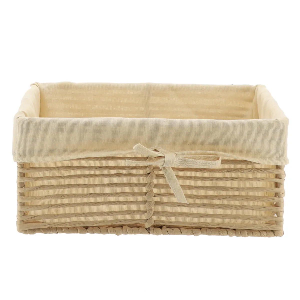 Coș depozitare HÂRTIE / METAL / IN 30X20,5X13,5 cm – Crem | Organizatoare baie. Organizează eficient spațiul cu coșul de depozitare realizat din hârtie împletită și metal, prevăzut cu husă interioară din in, o soluție practică și estetică pentru baie sau alte zone ale locuinței.