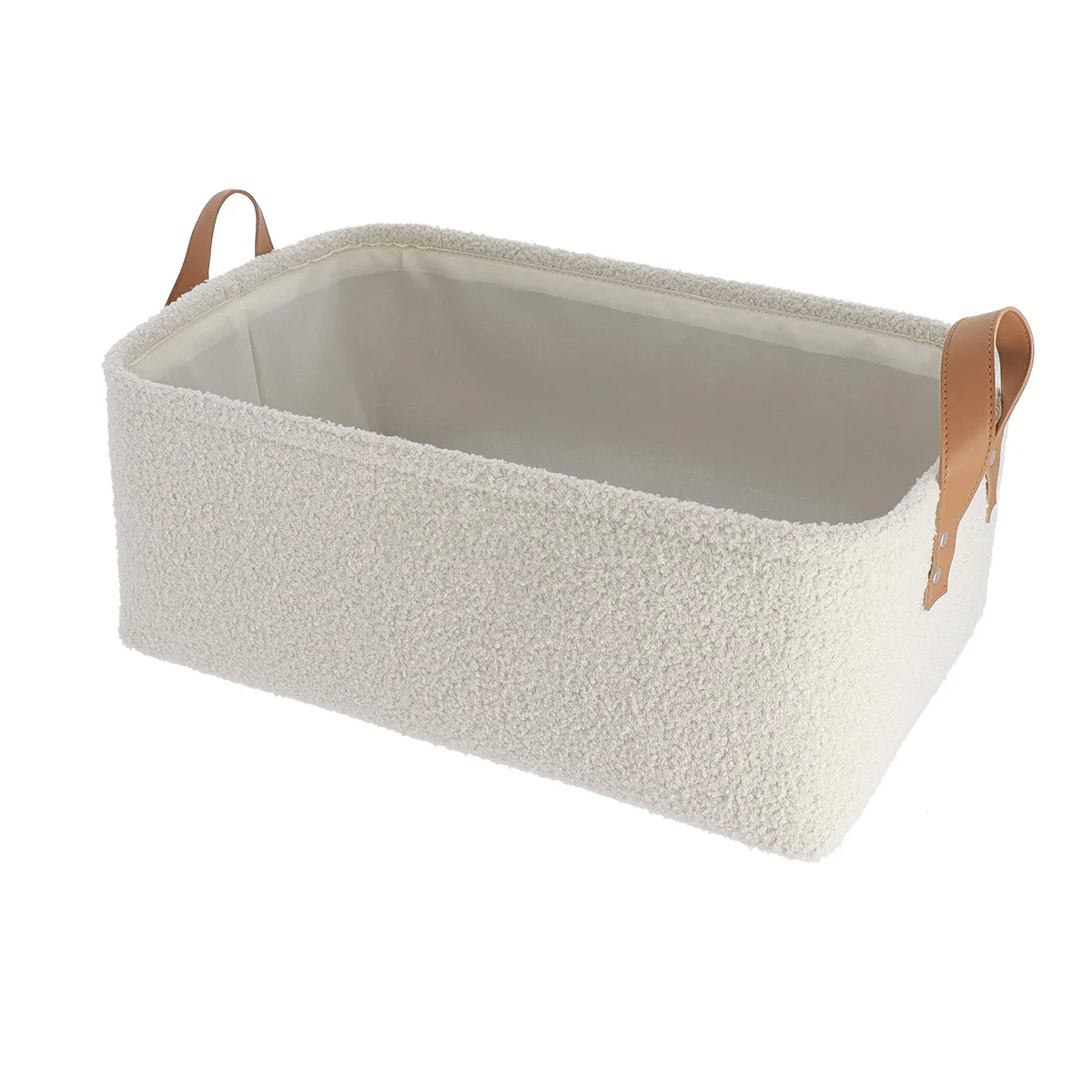 Coș depozitare rectangular POLIESTER finisaj pufos 44X31X17 cm – Alb | Organizatoare baie