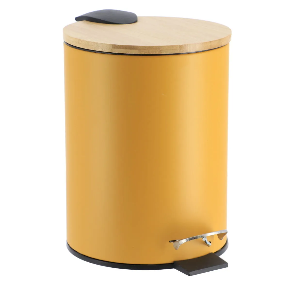 COȘ GUNOI METALIC 5L CAPAC BAMBUS – NEGRU | COȘURI DE GUNOI BAIE