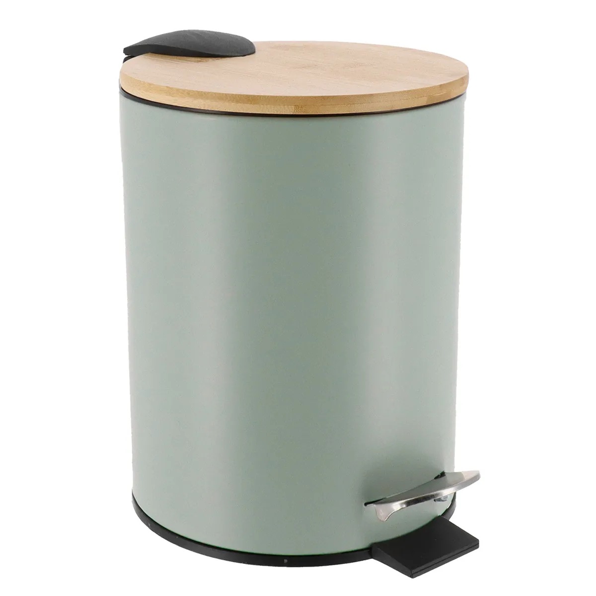 COȘ GUNOI METALIC 5L CAPAC BAMBUS – VERDE PASTEL | COȘURI DE GUNOI BAIE