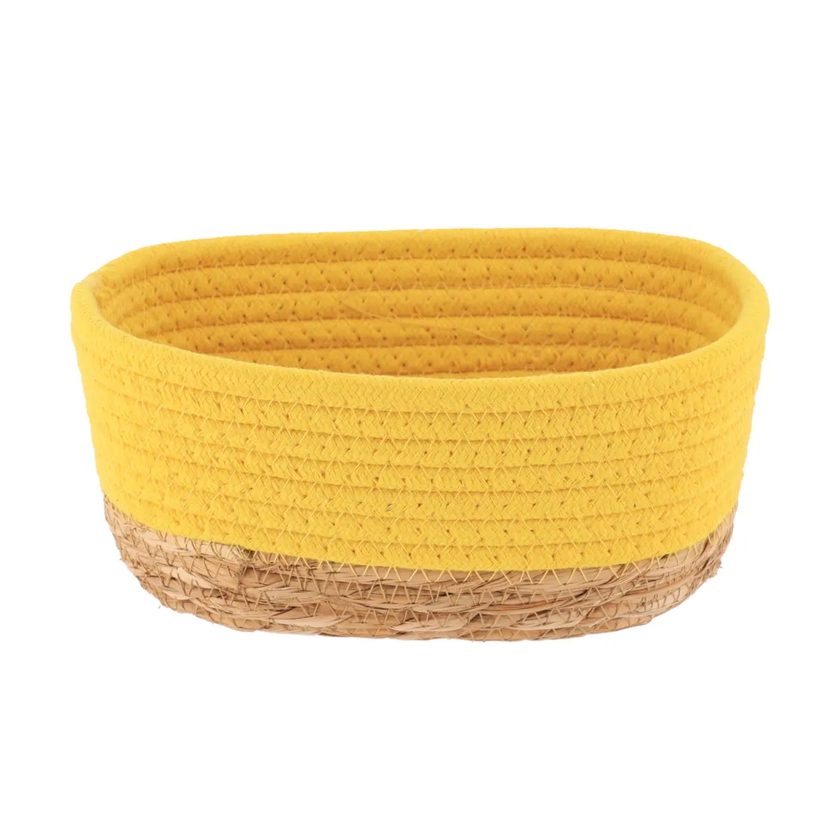 Coș mic rectangular BUMBAC / IARBA DE MARE 19X11X10 cm – Galben / Bej | Organizatoare baie. Coșul mic rectangular din bumbac și iarbă de mare, în nuanțe calde de galben și bej, este o soluție practică și decorativă pentru organizarea băii și a altor spații din locuință. Realizat din bumbac împletit și iarbă de mare, coșul oferă flexibilitate, rezistență și un aspect natural. Combinația de culori galben / bej adaugă o notă luminoasă și plăcută, integrându-se ușor în decoruri moderne sau naturale. Este potrivit pentru organizarea cosmeticelor, produselor de îngrijire, accesoriilor de baie sau altor obiecte de uz zilnic.
