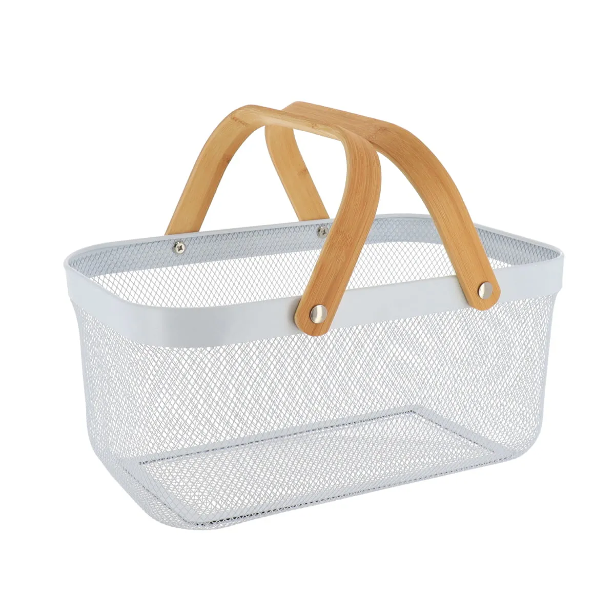 Coș rectangular depozitare 44X29X38 cm METAL / MANER BAMBUS – Alb | Organizatoare baie. Organizează eficient spațiul din baie sau din alte încăperi cu coșul rectangular de depozitare din metal, prevăzut cu mânere din bambus, culoare alb, un accesoriu practic și elegant pentru depozitarea obiectelor de zi cu zi. Designul modern, cu finisaj metalic și accente naturale din bambus, se integrează armonios în amenajări contemporane, industriale sau scandinave. Structura din metal perforat asigură durabilitate și o bună aerisire a conținutului, iar mânerele din bambus oferă un plus de confort și stabilitate în utilizare. Datorită dimensiunii de 44 × 29 × 38 cm, coșul oferă spațiu generos de depozitare, fiind ideal pentru prosoape, produse de baie, accesorii sau alte obiecte de uz casnic.