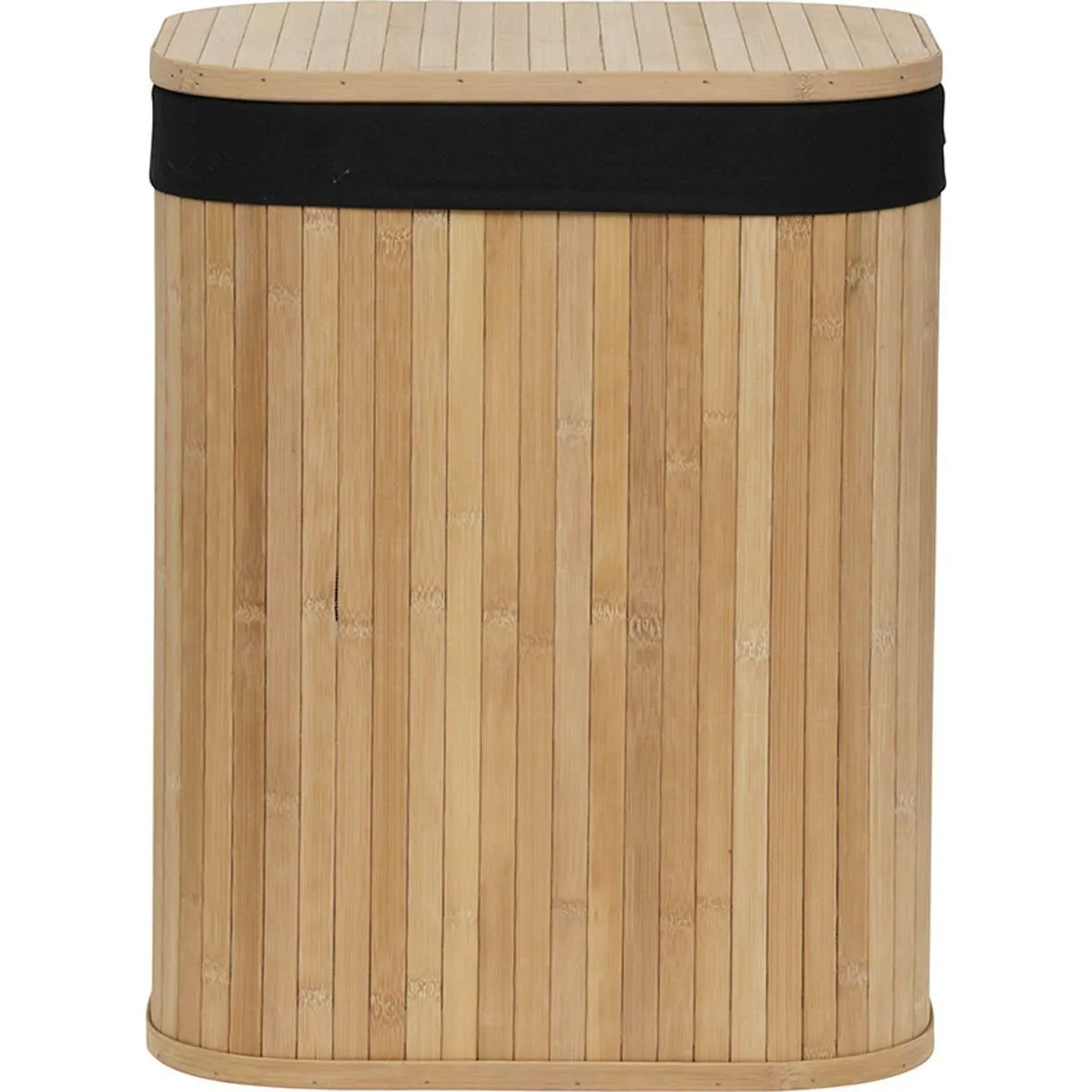 Coș rufe BAMBUS / IN mediu cu capac 36,5X28,5X47 cm – Bamboo / Negru | Organizatoare baie. Coșul de rufe din bambus mediu cu capac și interior textil este soluția practică pentru organizarea eficientă a băii, dormitorului sau dressingului. Fabricat din bambus natural, acest organizator de baie oferă un echilibru perfect între funcționalitate și design modern, potrivindu-se armonios în spații contemporane sau minimaliste. Interiorul textil detașabil asigură depozitarea igienică a rufelor și permite curățarea rapidă, iar capacul din bambus ajută la păstrarea unui aspect ordonat. Dimensiunea 36,5 × 28,5 × 47 cm este ideală pentru spații medii, oferind suficient volum fără a ocupa mult loc.