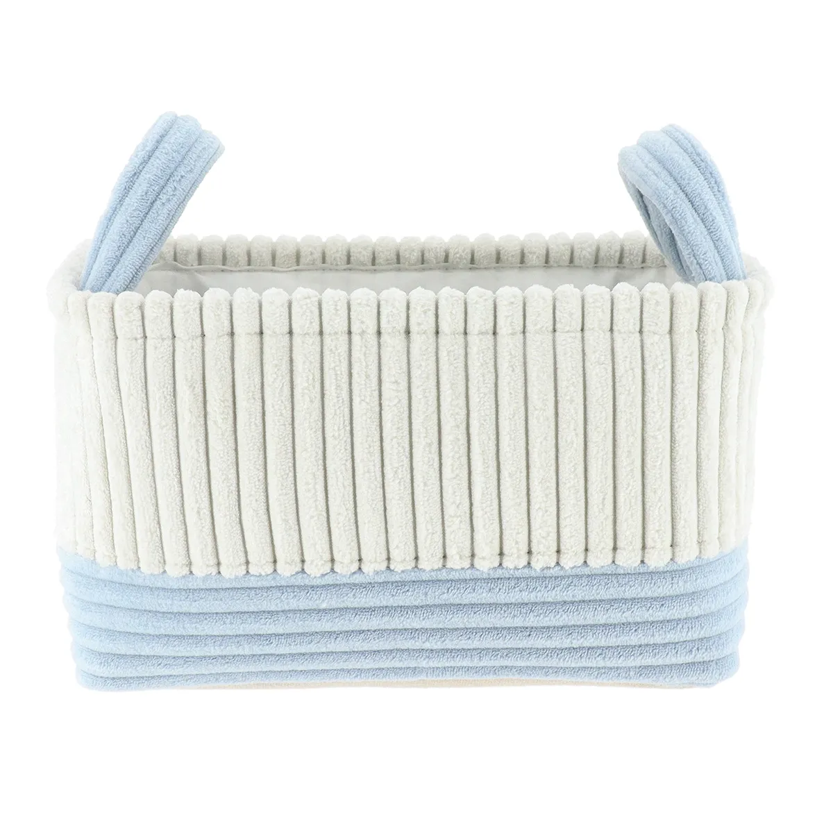 Coș rufe bicolor catifelat rectangular mediu 32X20X18 cm – Alb / Azur | Organizatoare baie. Coșul de rufe rectangular mediu, realizat din material textil catifelat, bumbac/poliester, în nuanțe alb/azur, este ideal pentru organizarea eficientă a băii, dormitorului sau camerei copilului. Forma rectangulară oferă stabilitate și acces facil la conținut, fiind potrivit pentru depozitarea prosoapelor, textilelor, produselor de îngrijire sau accesoriilor. Designul bicolor modern și textura plăcută la atingere adaugă un plus de eleganță și funcționalitate. Coșul este prevăzut cu mânere laterale pentru transport ușor și poate fi utilizat individual sau împreună cu celelalte coșuri din set.