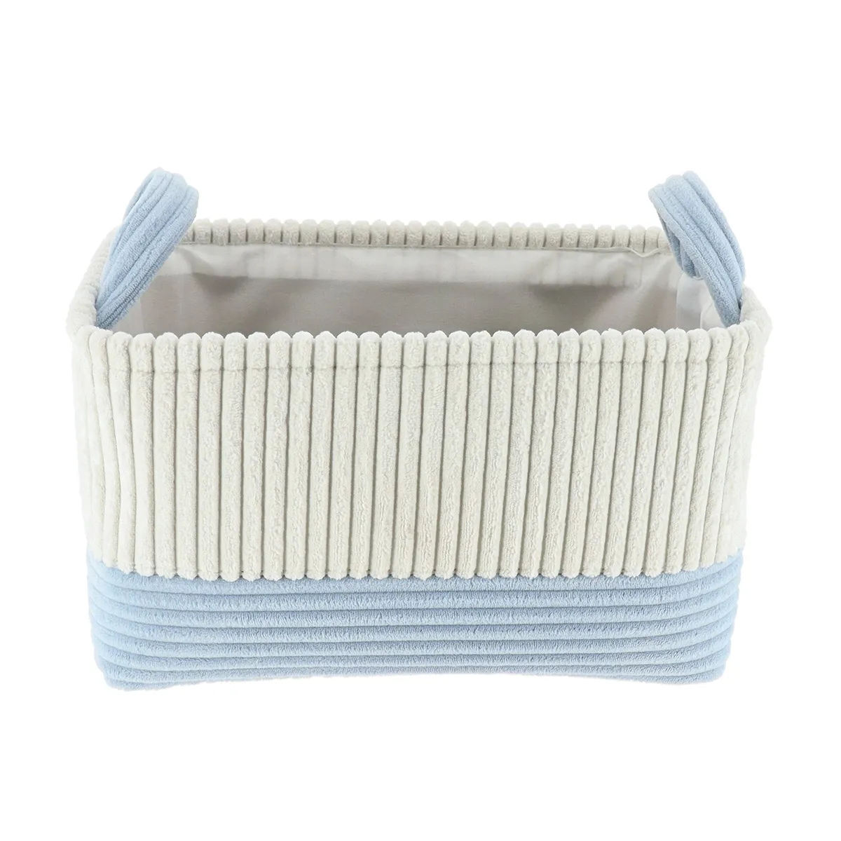 Coș rufe bicolor catifelat rectangular mic 28X16X16 cm – Alb / Azur | Organizatoare baie. Coșul de rufe rectangular mic, realizat din material textil catifelat, bumbac/poliester, în nuanțe alb/azur, este ideal pentru organizarea eficientă a băii, dormitorului sau camerei copilului. Forma rectangulară oferă stabilitate și acces facil la conținut, fiind potrivit pentru depozitarea prosoapelor, textilelor, produselor de îngrijire sau accesoriilor. Designul bicolor modern și textura plăcută la atingere adaugă un plus de eleganță și funcționalitate. Coșul este prevăzut cu mânere laterale pentru transport ușor și poate fi utilizat individual sau împreună cu celelalte coșuri din set. Acest produs face parte dintr-un set de 5 coșuri bicolore, cu forme și dimensiuni diferite, conceput pentru organizare practică și decor armonios. Țara de origine: CN.