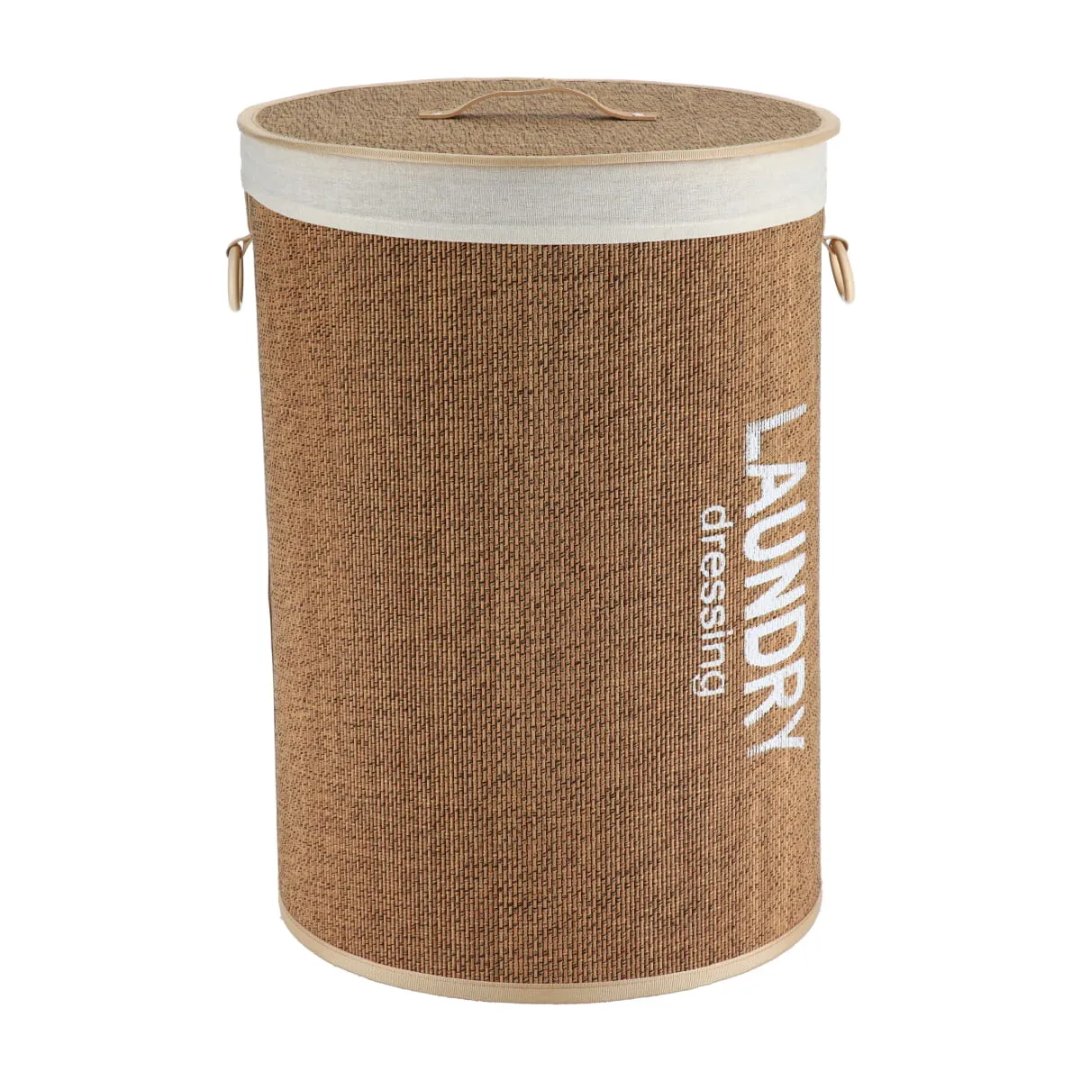 Coș rufe cu capac BAMBUS mare 42X58 CM – Alb / Bamboo | Organizatoare baie. Coșul de rufe mare cu capac din bambus, în nuanțe alb/bamboo, este o soluție practică și elegantă pentru organizarea băii, dormitorului sau dressingului. Designul natural, cu finisaj textil și capac rigid din bambus, oferă un aspect modern și ajută la menținerea unui spațiu ordonat. Capacul din bambus acoperă conținutul și reduce vizibilitatea rufelor, contribuind la un ambient curat și organizat. Coșul este prevăzut cu mânere laterale pentru transport ușor și utilizare zilnică confortabilă.
