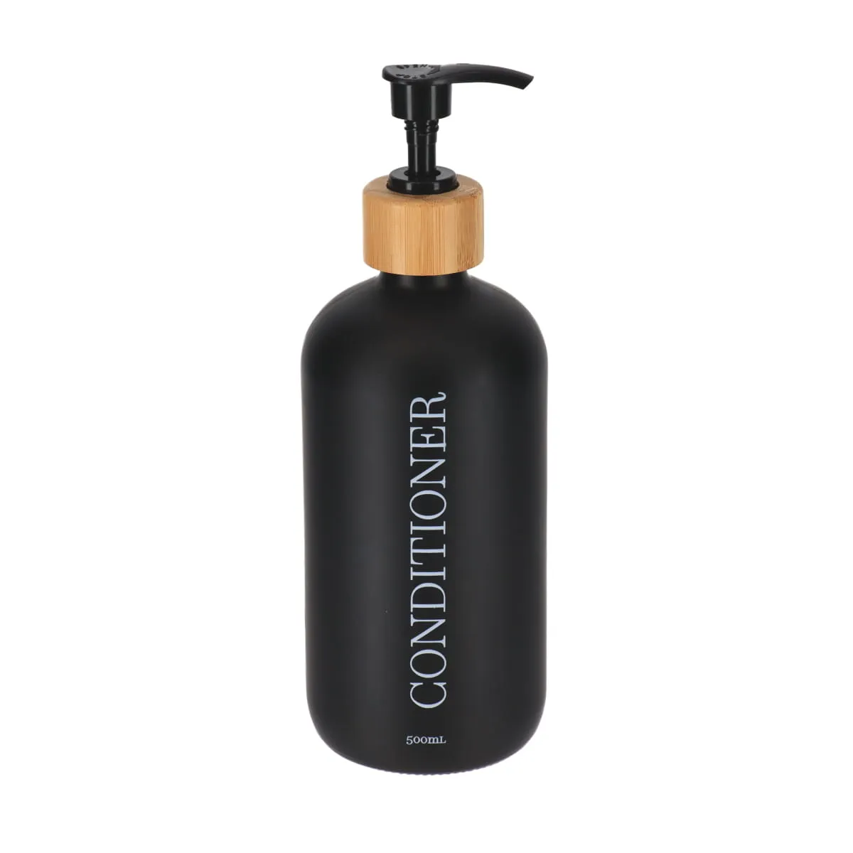 DISPENSER BALSAM 500ML STICLĂ/ BAMBUS – NEGRU MAT