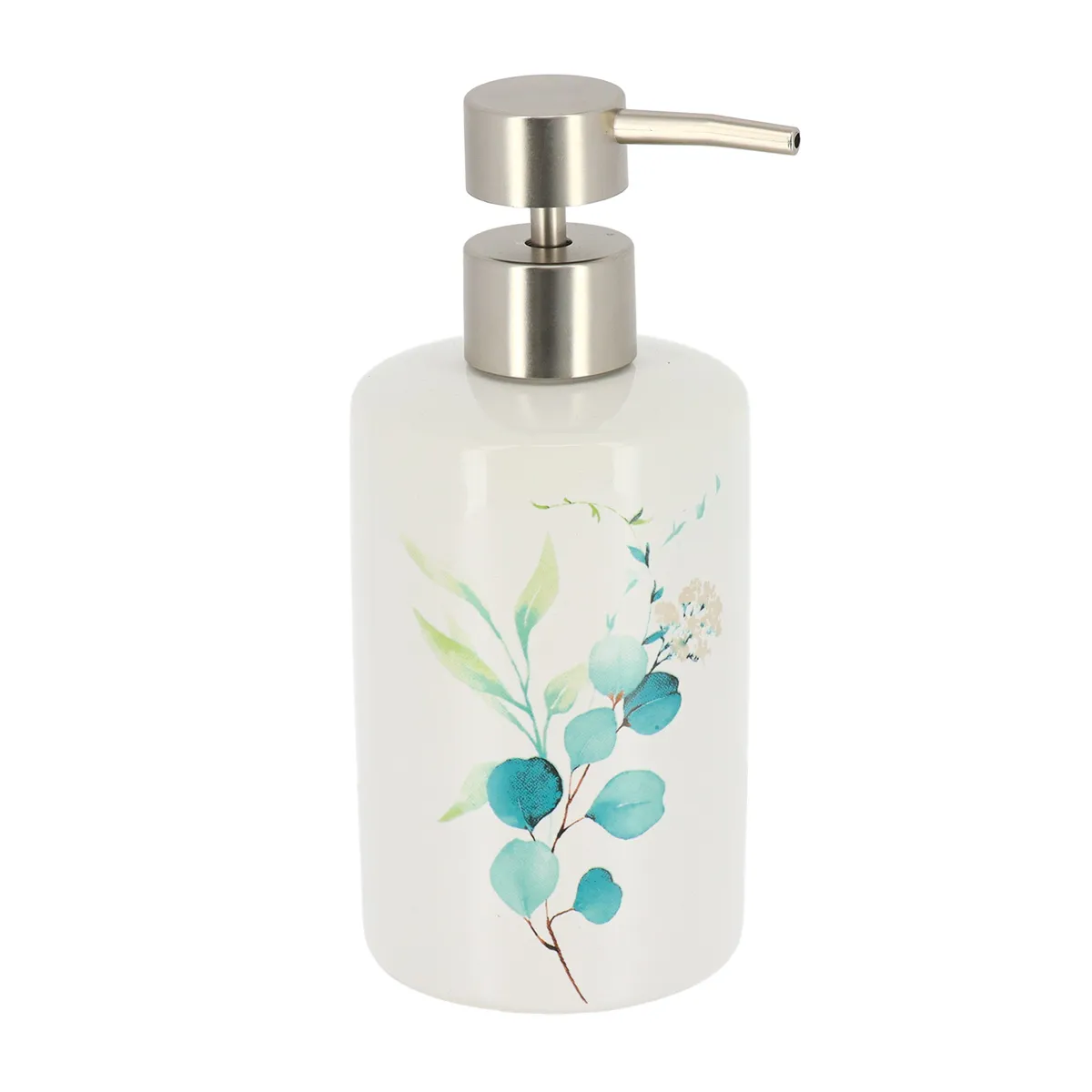 DISPENSER SĂPUN CERAMICĂ 320 ML DESIGN FLORAL – ALB / BLEU ESTE UN DISPENSER PENTRU SĂPUN LICHID, IDEAL PENTRU UTILIZAREA ZILNICĂ LA LAVOAR. REALIZAT DIN CERAMICĂ, ÎN CULOAREA ALB / BLEU, SE INTEGREAZĂ UȘOR ÎN ORICE BAIE.