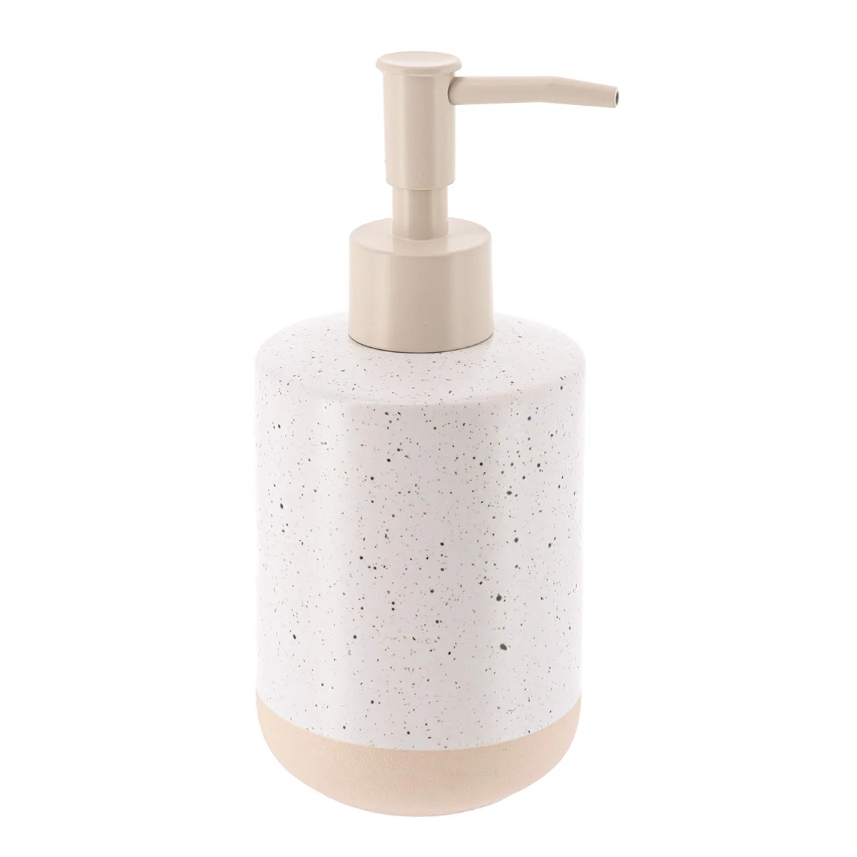DISPENSER SĂPUN CERAMICĂ 330ML LACUIT CU INSERTII – ALB / BEJ ESTE UN DISPENSER PENTRU SĂPUN LICHID, IDEAL PENTRU UTILIZAREA ZILNICĂ LA LAVOAR. REALIZAT DIN CERAMICĂ, ÎN CULOAREA ALB / BEJ, SE INTEGREAZĂ UȘOR ÎN ORICE BAIE.