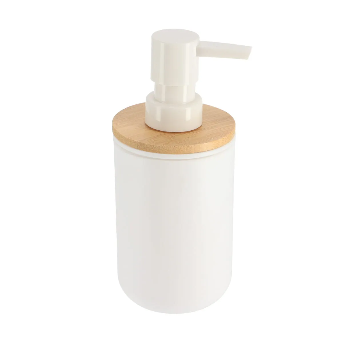 DISPENSER SĂPUN PLASTIC 300 ML – ALB/BAMBOO