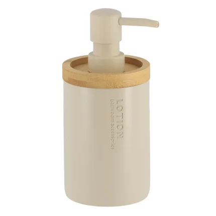 DISPENSER SĂPUN PLASTIC SI BAMBUS 380 ML – BEJ