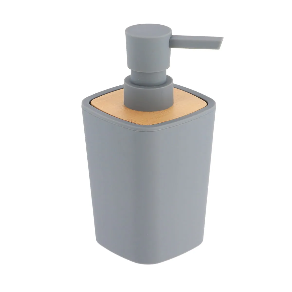 DISPENSER SĂPUN PLASTIC SI BAMBUS 380 ML – GRI ESTE UN DISPENSER PENTRU SĂPUN LICHID, IDEAL PENTRU UTILIZAREA ZILNICĂ LA LAVOAR. REALIZAT DIN PLASTIC, ÎN CULOAREA GRI, SE INTEGREAZĂ UȘOR ÎN ORICE BAIE.