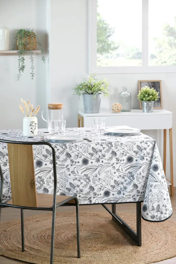 Fața de masă Pissenlit 140X240 cm, culoare antracit, 100% poliester este potrivită pentru bucătărie și dining, pentru utilizare zilnică sau ocazii. Protejează masa și completează decorul. Material: 100% poliester; întreținere: conform etichetei.