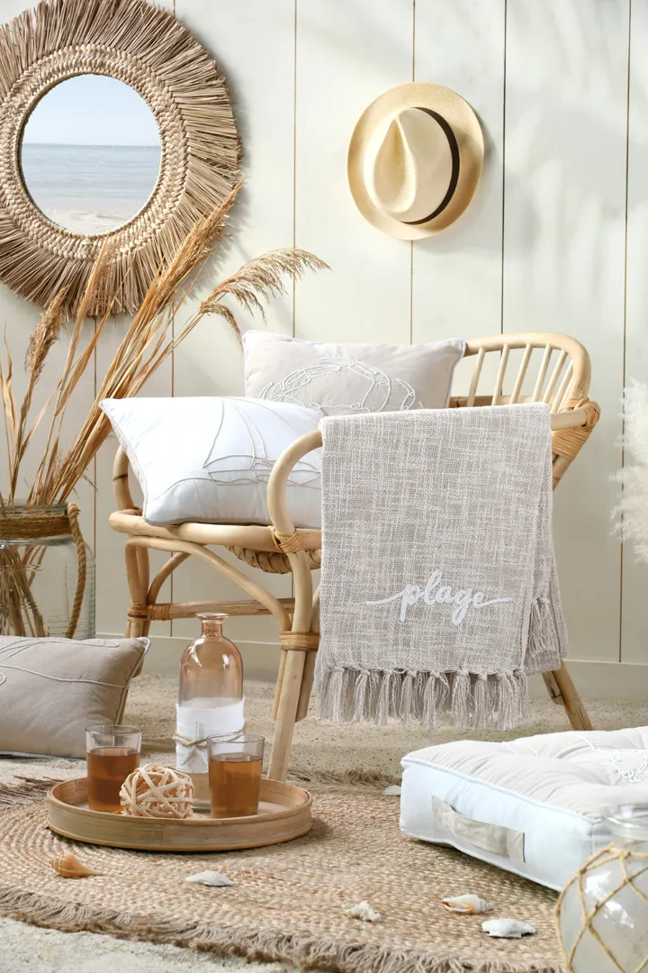 Pătură Dunes 125×150 cm, culoare Natural, 55% bumbac, 45% poliester – o pătură decorativă cu textură rustică și aspect natural, ideală pentru a aduce un plus de căldură și autenticitate în locuința ta. Realizată dintr-un amestec de bumbac și poliester provenite din fibre reciclate, pătura este plăcută la atingere, respirabilă și durabilă, potrivită pentru utilizare zilnică. Dimensiunea de 125×150 cm o face ideală pentru living sau dormitor, fiind perfectă pentru canapea, fotoliu sau pat. Designul simplu, inspirat de nuanțele naturale ale nisipului, se integrează armonios în decoruri boho, scandinave, rustice sau minimaliste. Pătura Dunes îmbină estetica naturală cu responsabilitatea față de mediu, fiind o alegere practică și elegantă, inclusiv ca idee de cadou. Fabricat în India. Întreținere: respectați instrucțiunile de pe etichetă