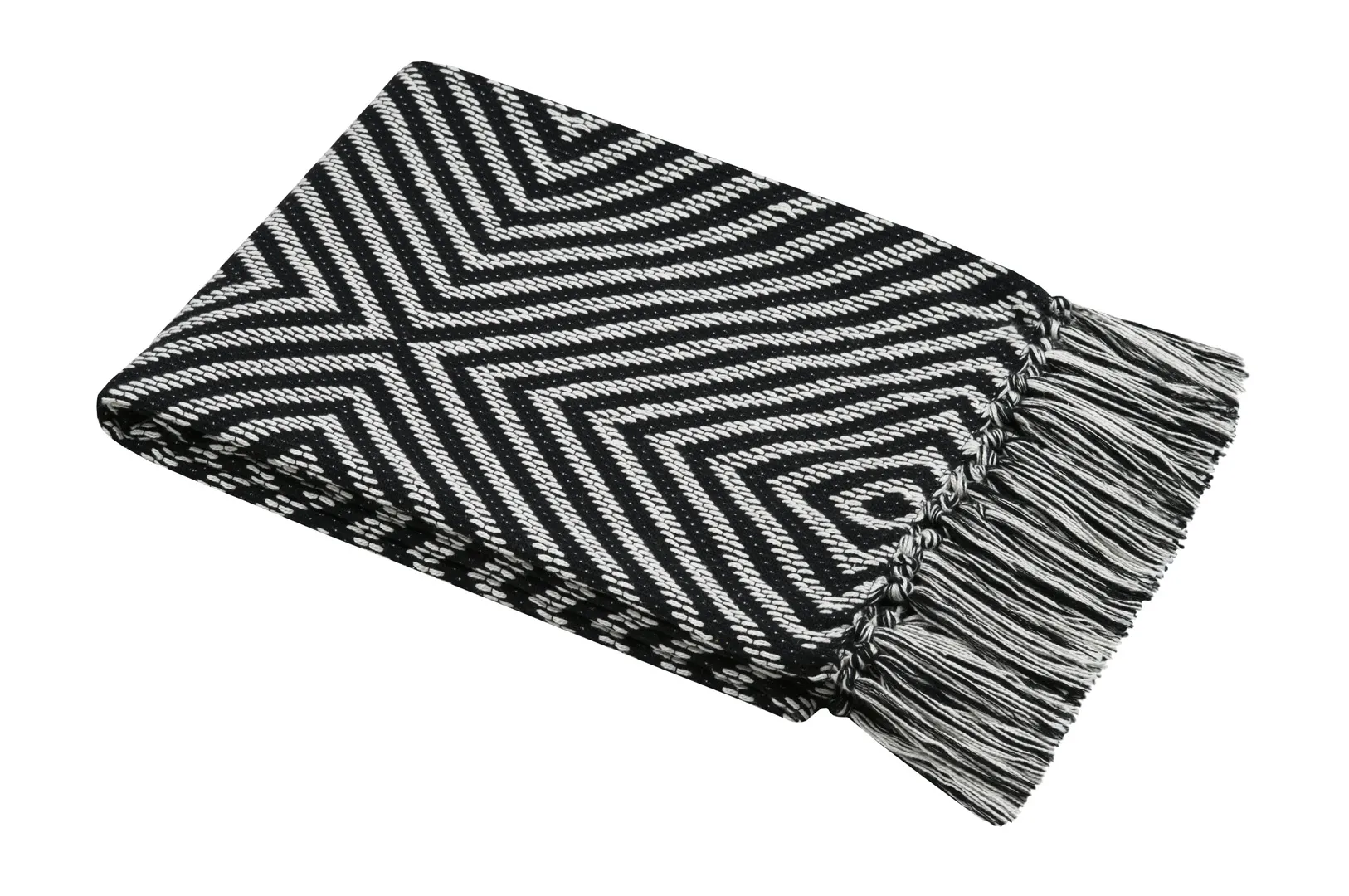 Pătură Tucano 125×150 cm, culoare negru, 55% bumbac, 45% poliester – o pătură decorativă cu design modern și contrastant, ideală pentru a adăuga un accent stilat și un plus de confort locuinței tale. Realizată dintr-un amestec de bumbac și poliester provenite din fibre reciclate, pătura este plăcută la atingere, respirabilă și rezistentă în timp. Dimensiunea de 125×150 cm o face potrivită pentru living sau dormitor, fiind ideală pentru canapea, fotoliu sau pat. Modelul geometric în nuanțe de negru și alb se integrează perfect în decoruri moderne, industriale sau etnice. Pătura Tucano îmbină estetica contemporană cu responsabilitatea față de mediu, fiind o alegere practică pentru utilizare zilnică sau ca idee de cadou inspirată. Fabricat în India. Întreținere: respectați instrucțiunile de pe etichetă.