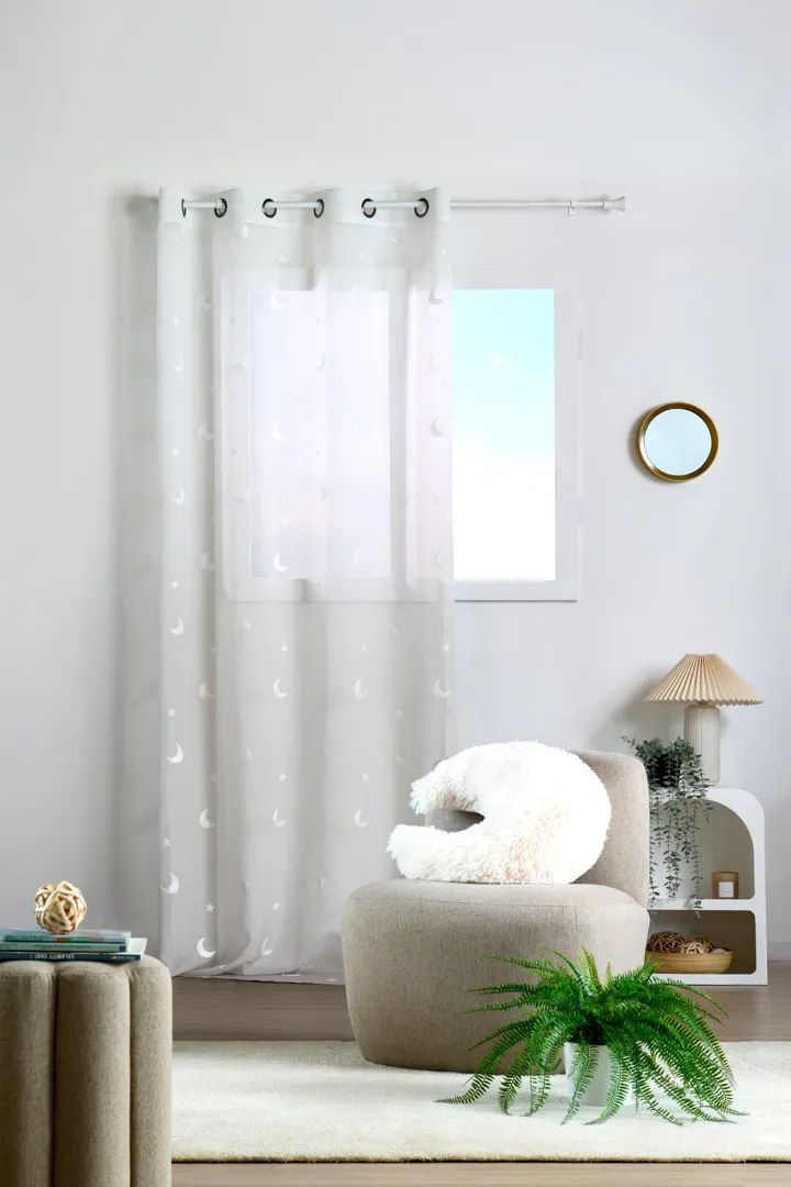 Perdeaua Moonlight 140X260 cm, culoare natural, 100% poliester este potrivită pentru living, dormitor sau birou, pentru a filtra lumina și a oferi intimitate. Se combină ușor cu draperii pentru un plus de confort vizual. Material: 100% poliester. Întreținere: conform etichetei.