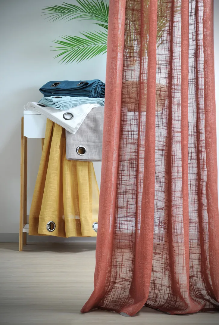 Perdeaua Ontario 135X260 cm, culoare cărămiziu, 100% poliester este potrivită pentru living, dormitor sau birou, pentru a filtra lumina și a oferi intimitate. Se combină ușor cu draperii pentru un plus de confort vizual. Material: 100% poliester. Întreținere: conform etichetei.