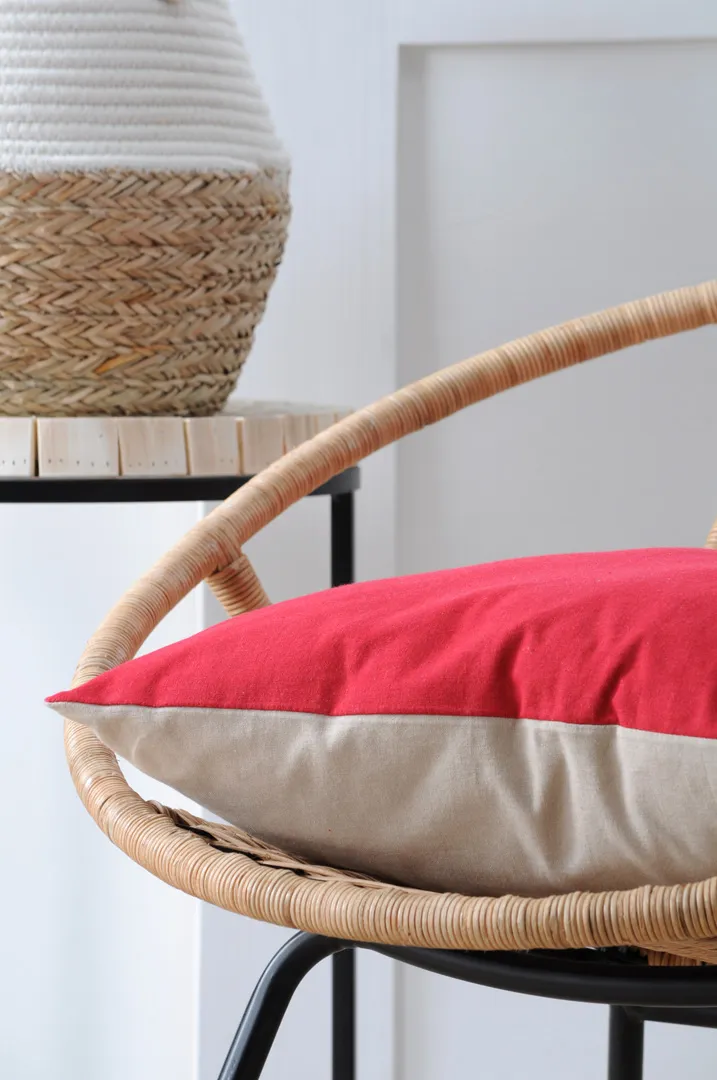 Perna decorativă Duo 50X50 cm, culoare roșu/in, 100% bumbac este potrivită pentru living, dormitor sau zona de relaxare. Oferă confort și adaugă un accent decorativ. Material: 100% bumbac; întreținere: conform etichetei.