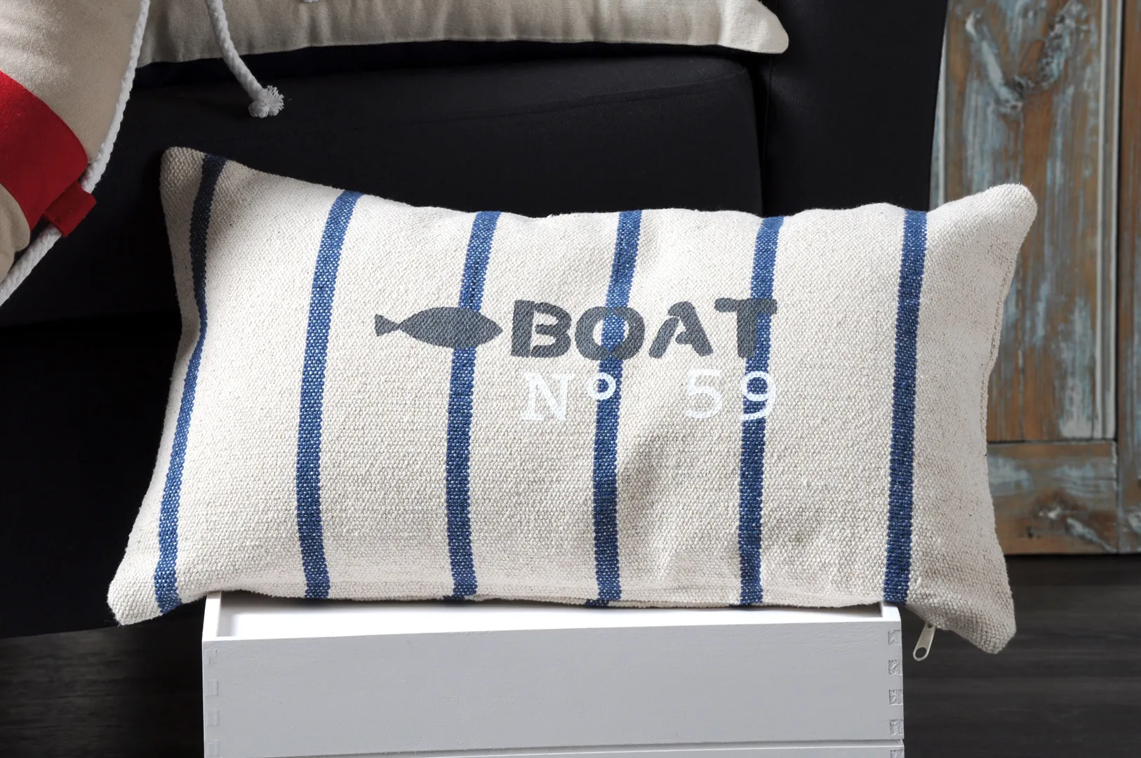 Perna decorativă Pampelonne 30X50 cm, culoare alb/albastru, 100% bumbac este potrivită pentru living, dormitor sau zona de relaxare. Oferă confort și adaugă un accent decorativ. Material: 100% bumbac; întreținere: conform etichetei.