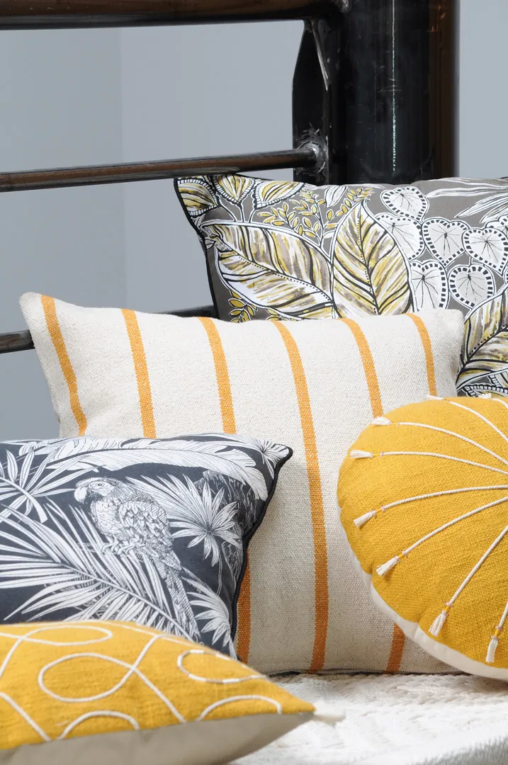 Perna decorativă St Trop 50X50 cm, culoare alb/muștar, 100% bumbac este potrivită pentru living, dormitor sau zona de relaxare. Oferă confort și adaugă un accent decorativ. Material: 100% bumbac; întreținere: conform etichetei.
