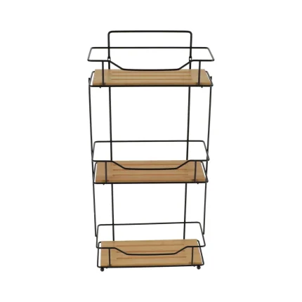 CARUCIOR DIN BAMBUS/MDF CU 3 RAFTURI PE ROTI – BAMBOO / NEGRU | ETAJERE BAIE