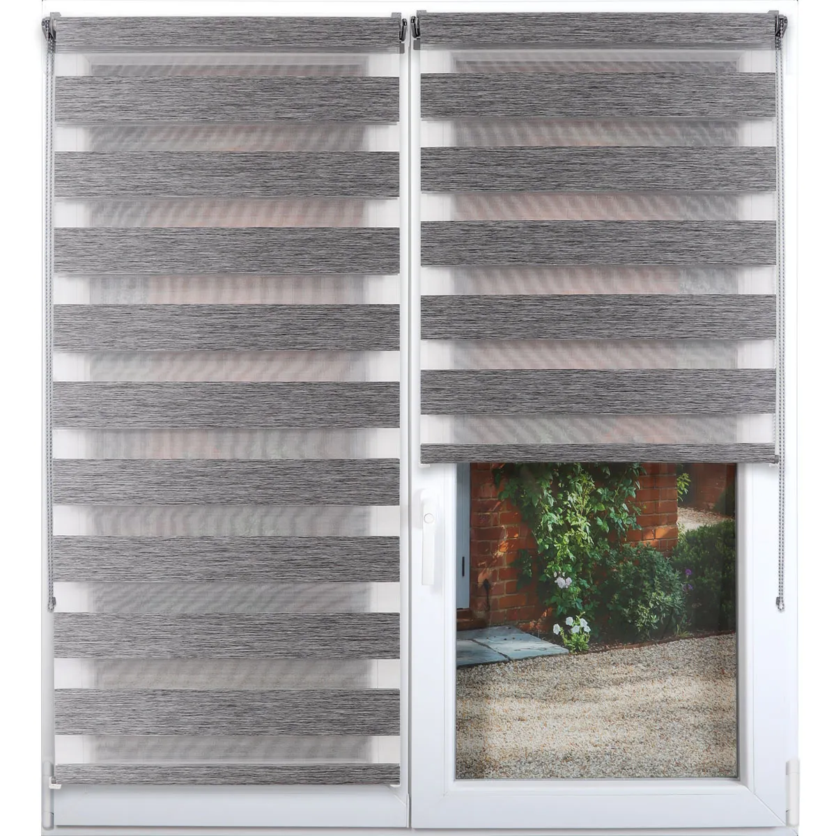 RULOU ZEBRA 75X180 CM- ARGINTIU/NEGRU COMPOZIȚIE POLYESTER | JALUZELE SUNT RULOURI TEXTILE TIP ZEBRA ZI-NOAPTE, CU DOUĂ STRATURI DE MATERIAL DISPUSE ÎN BENZI ALTERNATIVE TRANSPARENTE ȘI OPACE. PERMIT REGLAREA PRECISĂ A LUMINII ȘI A INTIMITĂȚII PRIN SUPRAPUNEREA FÂȘIILOR. DIMENSIUNEA MATERIALULUI ESTE 72 X 180 CM, IAR CULOAREA ARGINTIU CU INSERTII NEGRE SE POTRIVEȘTE UȘOR ÎN DECORUL INTERIOR. SUNT REALIZATE DIN POLYESTER, REZISTENTE ȘI UȘOR DE ÎNTREȚINUT. SET ACCESORII DE PRINDERE SI MECANISM. SISTEMUL OFERĂ O FILTRARE A LUMINII PARTIAL, FUNCTIE DESCHIS/INCHIS, IDEALĂ PENTRU LIVING, DORMITOR SAU BIROU. PRODUS FABRICAT ÎN CN.