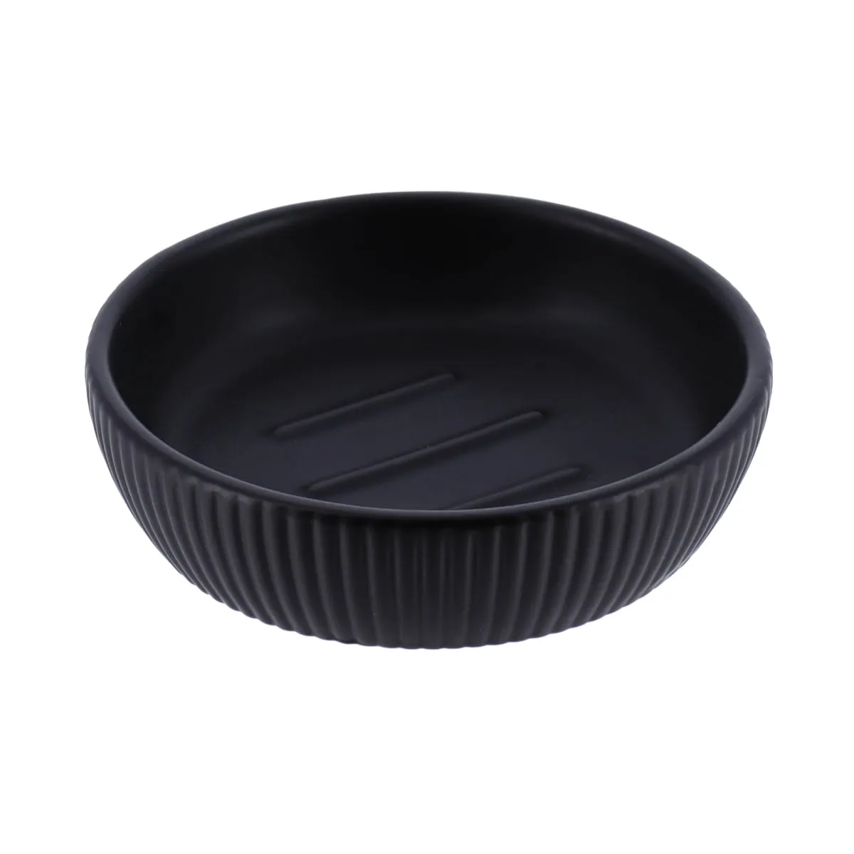 SĂPUNIERA CERAMICĂ ROTUNDĂ STRIATII – NEAGRĂ ESTE O SĂPUNIERĂ DE BAIE PENTRU SĂPUN SOLID, GÂNDITĂ PENTRU A PĂSTRA SĂPUNUL CURAT ȘI USCAT ÎNTRE UTILIZĂRI. REALIZATĂ DIN CERAMICĂ, ÎN CULOAREA NEAGRĂ, SE POTRIVEȘTE UȘOR LÂNGĂ LAVOAR SAU ÎN ZONA DUȘULUI.
