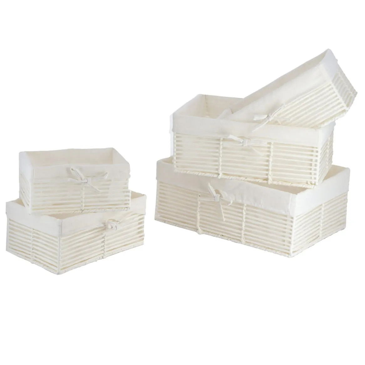 Set 5 X coș depozitare HÂRTIE / METAL / IN – Alb | Organizatoare baie set
