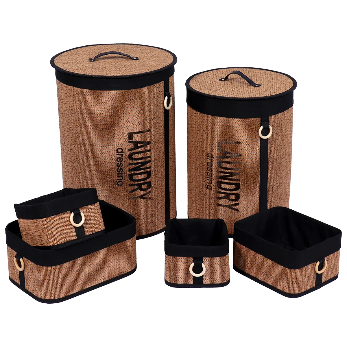 Set 5 X coș rufe IUTA/BUMBAC/POLIESTER – Natural/Bej | Organizatoare baie set