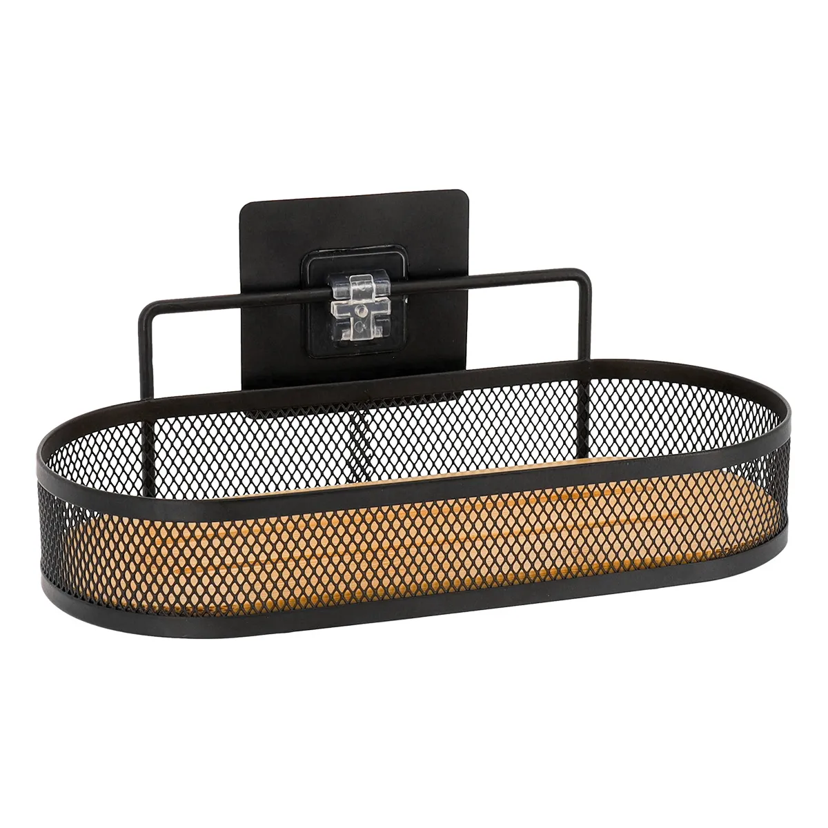 SUPORT COSMETICE OVAL CU ADEZIV METAL/BAMBUS – NEGRU / BAMBOO | ETAJERE BAIE ESTE O ETAJERĂ DE BAIE PRACTICĂ, PENTRU DEPOZITAREA PRODUSELOR DE ÎNGRIJIRE ȘI A ACCESORIILOR. SE MONTEAZĂ ȘI AJUTĂ LA ORGANIZAREA VERTICALĂ A SPAȚIULUI.